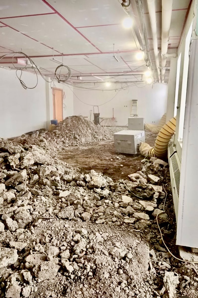 Le projet de modernisation des bureaux municipaux de Saint-Damien-de-Buckland vise à créer un espace à la fois moderne, fonctionnel et ancré dans l’identité locale. Le corridor met en valeur l’histoire de la ville grâce à un aménagement élégant, notamment avec des portes en bois massif apportant chaleur et caractère. À l’entrée, une réception vitrée lumineuse, intégrant le logo de la municipalité, offre une première impression professionnelle tout en préservant l’intimité des employés. Sur le plan technique, la dalle de béton existante a été démolie et remplacée par une nouvelle fondation conforme aux normes, incluant compaction, armature et finition soignée, assurant durabilité et stabilité à long terme.
