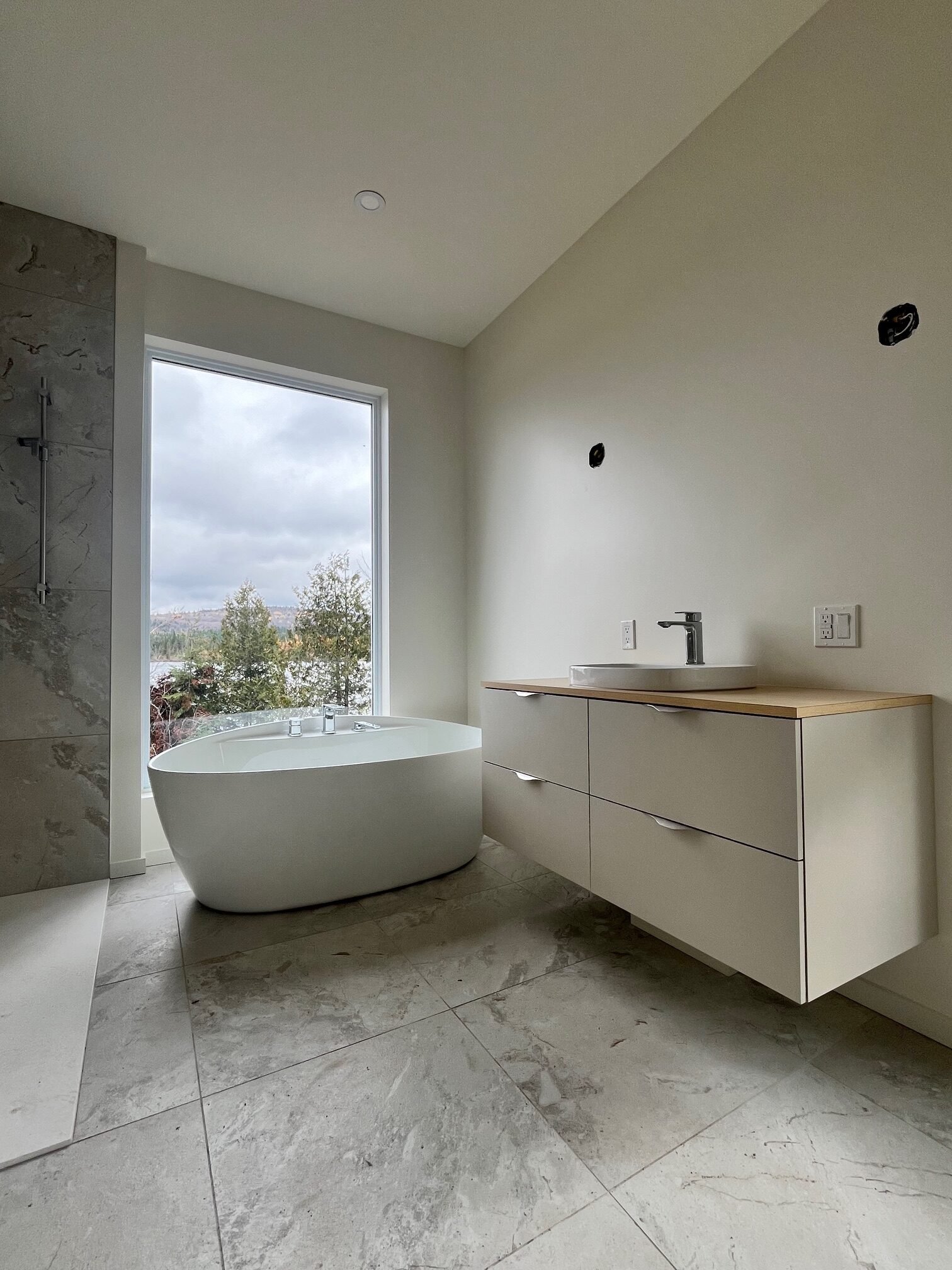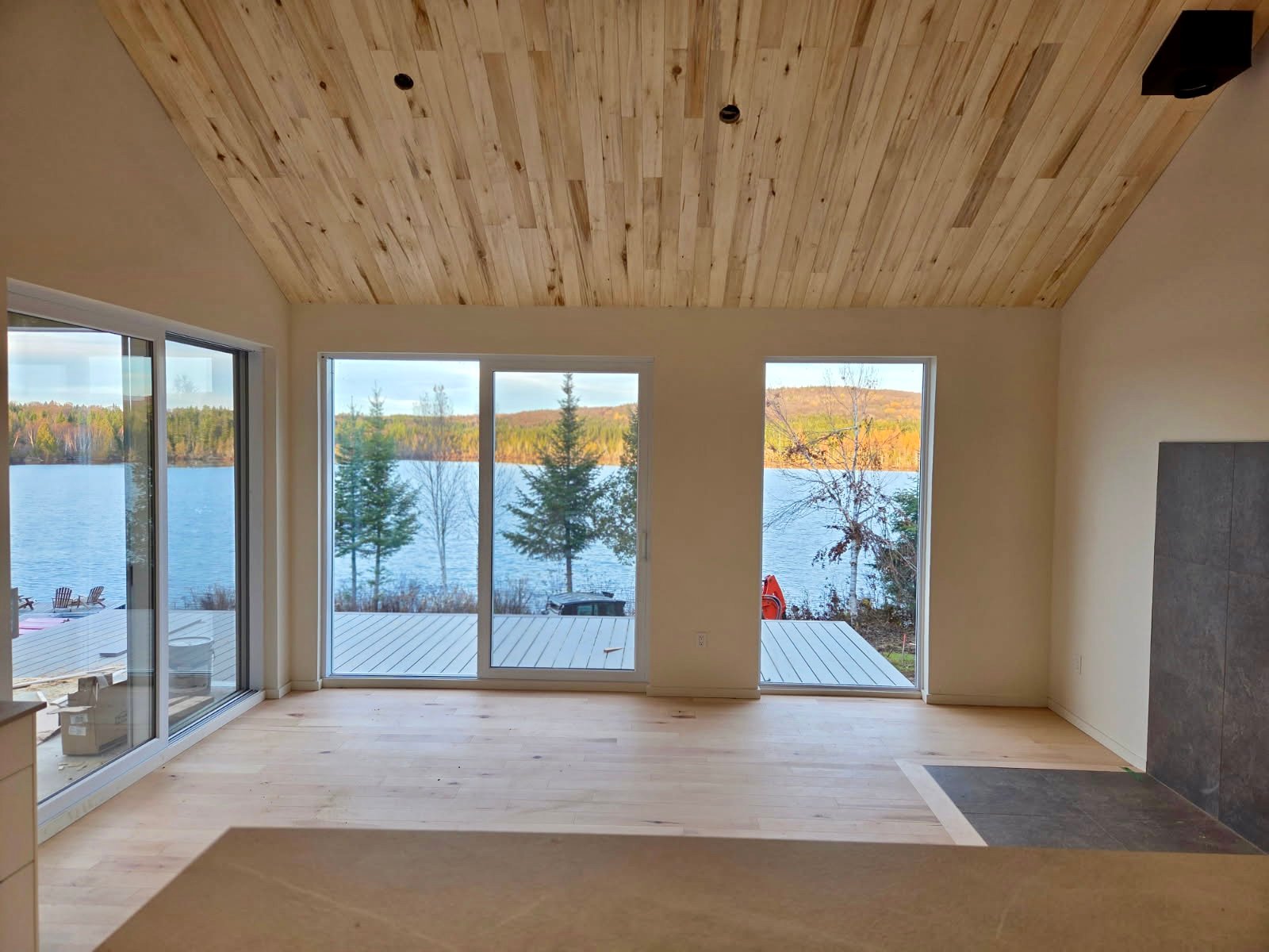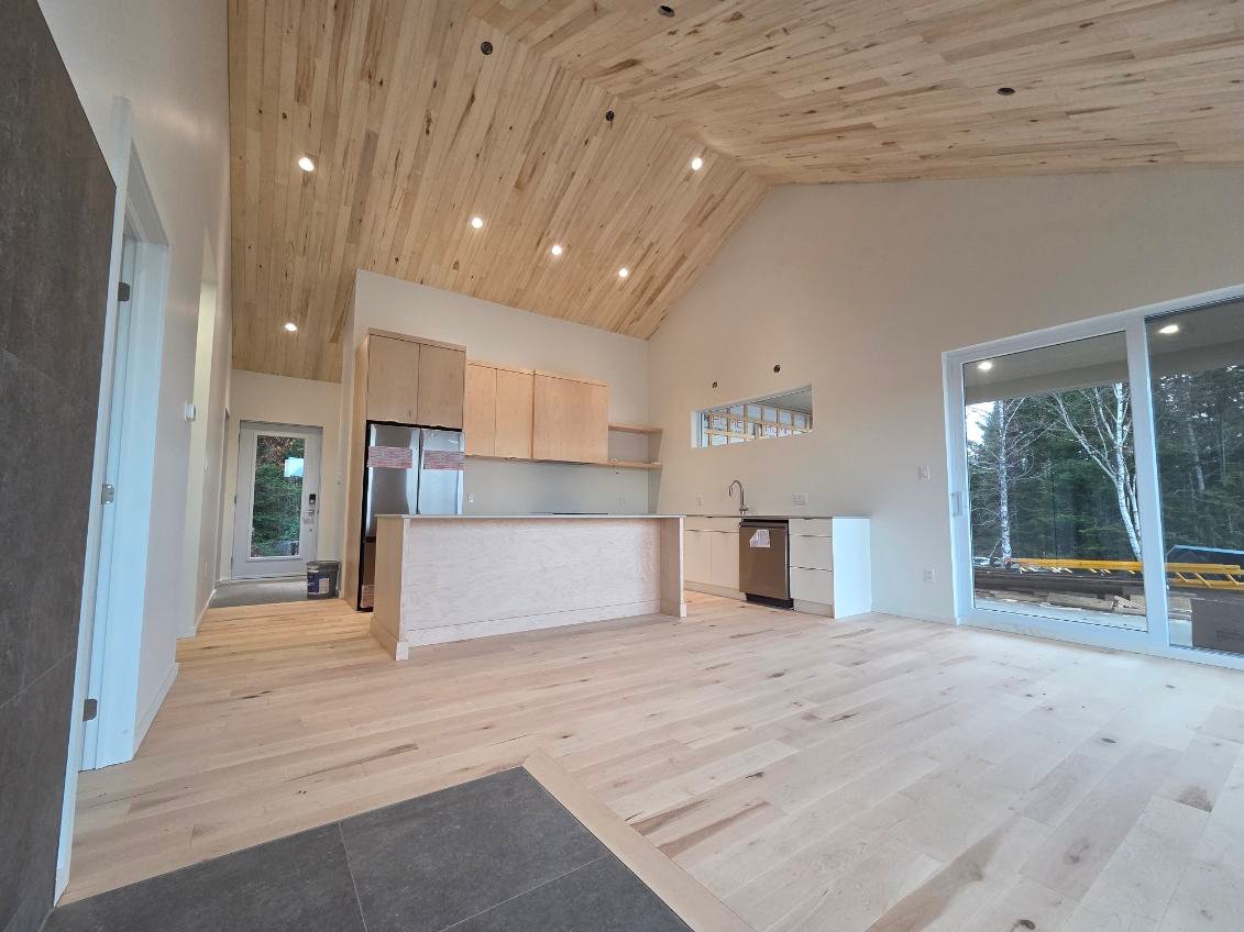 Un chalet unique de style scandinave, conçu de A à Z avec une attention remarquable aux détails, alliant matériaux de qualité et design intemporel. Revêtu de cèdre à teinte grisâtre pour une touche moderne, il propose des espaces lumineux et chaleureux, dont une cuisine épurée en bois naturel ouverte sur une salle à manger avec foyer central et mur entièrement vitré. Le toit cathédrale en bois franc accentue la grandeur des lieux, tandis que la salle de bain haut de gamme offre une vue panoramique sur le lac avec bain autoportant et douche en polymarbre. Pensé pour le confort en toute saison, ce projet inclut également un rez-de-jardin optimisé, un mudroom fonctionnel et un balcon avec plancher chauffant au glycol, créant un véritable havre de paix où rien n’est laissé au hasard.